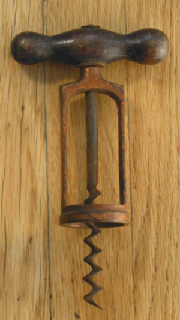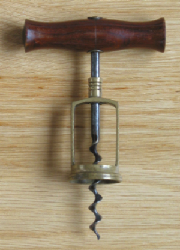 corkscrew with mahogany handle and brass frame, English late 1800s. Item C237 SOLD